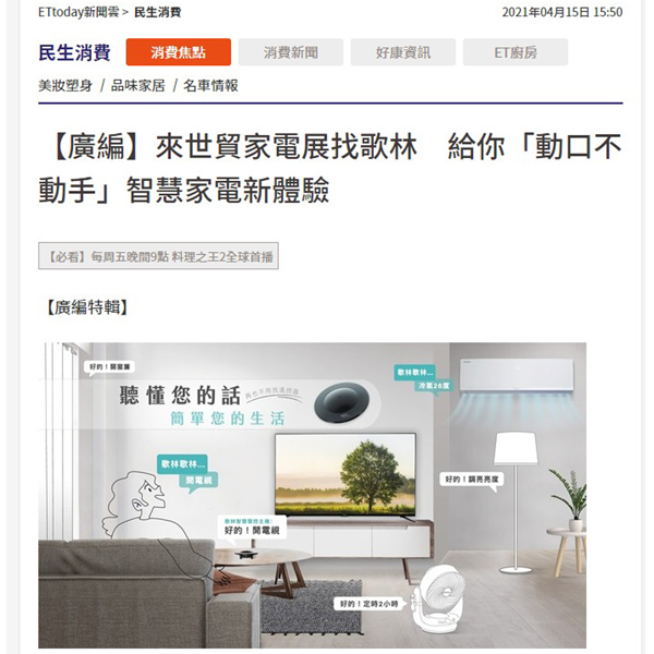 來世貿家電展找歌林 給你「動口不動手」智慧家電新體驗(Ettoday)