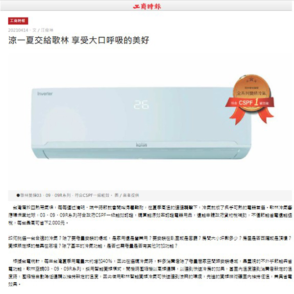 涼一夏交給歌林 享受大口呼吸的美好(工商時報)