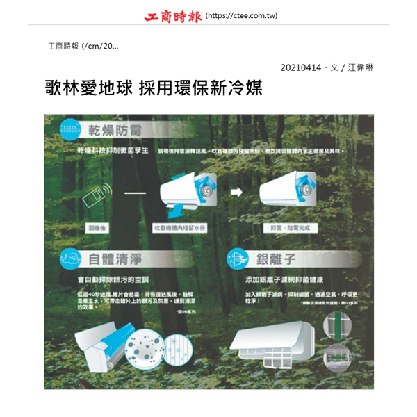 歌林03與09R系列冷氣分別採用R410A、R32環保新冷媒。目前冷氣...