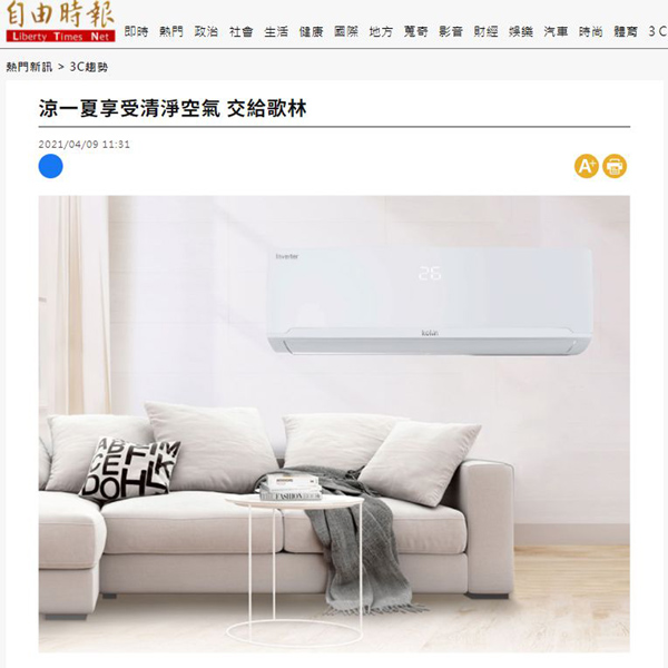 涼一夏享受清淨空氣 交給歌林(自由時報)