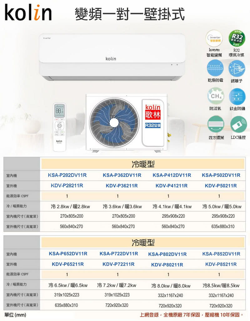 - 9. 正常家用場所上網登錄保固:全機7年,壓縮機10年保固