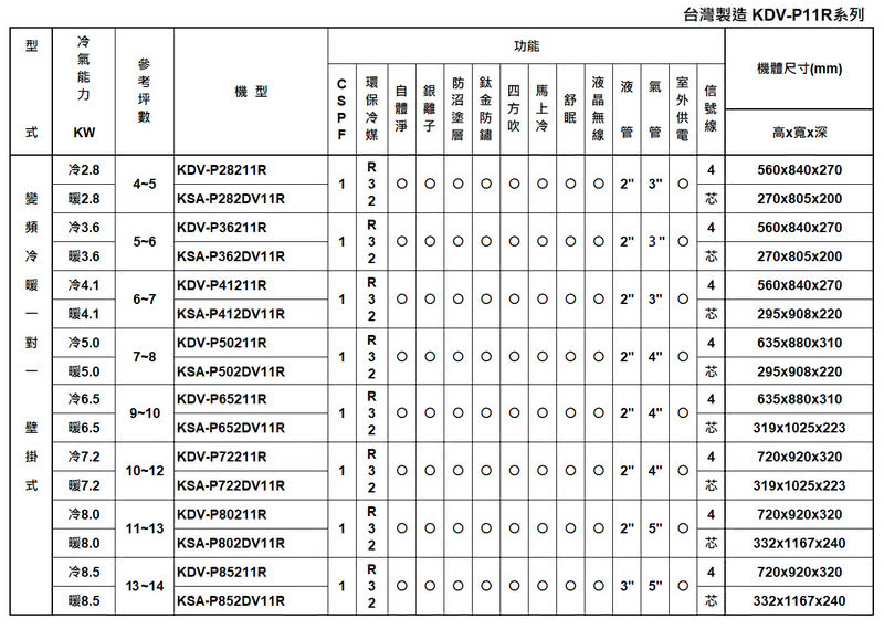 - 1. 額定冷氣能力:冷6.5Kw/暖6.5Kw